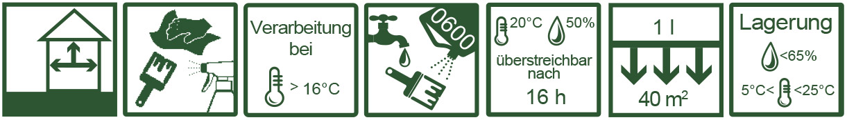 Untergründe müssen trocken (max. 12% Feuchte), saugfähig, schmutz- und fettfrei sein. Sauber abgestufter Schleifaufbau bis P180 / P240 wird empfohlen.