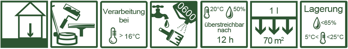 Untergründe müssen trocken, saugfähig, schmutz- und fettfrei sein. Sauber abgestufter Schleifaufbau bis P120 / P150 wird empfohlen.